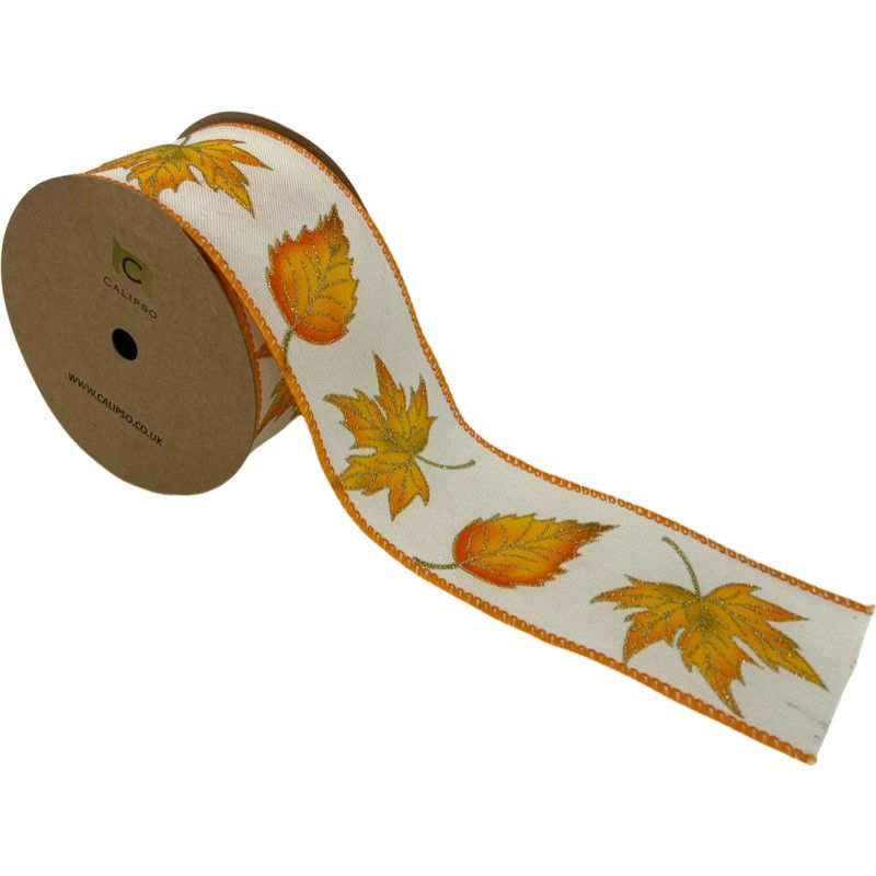 Featuring rich, colourful leaf patterns, this high-quality ribbon is perfect for wreaths, bouquets, and fall decorations.